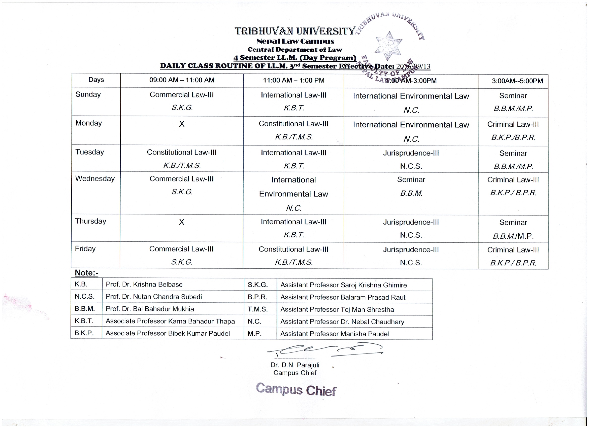 Routine of LL.M. 3rd Semester (4 Semester Program)