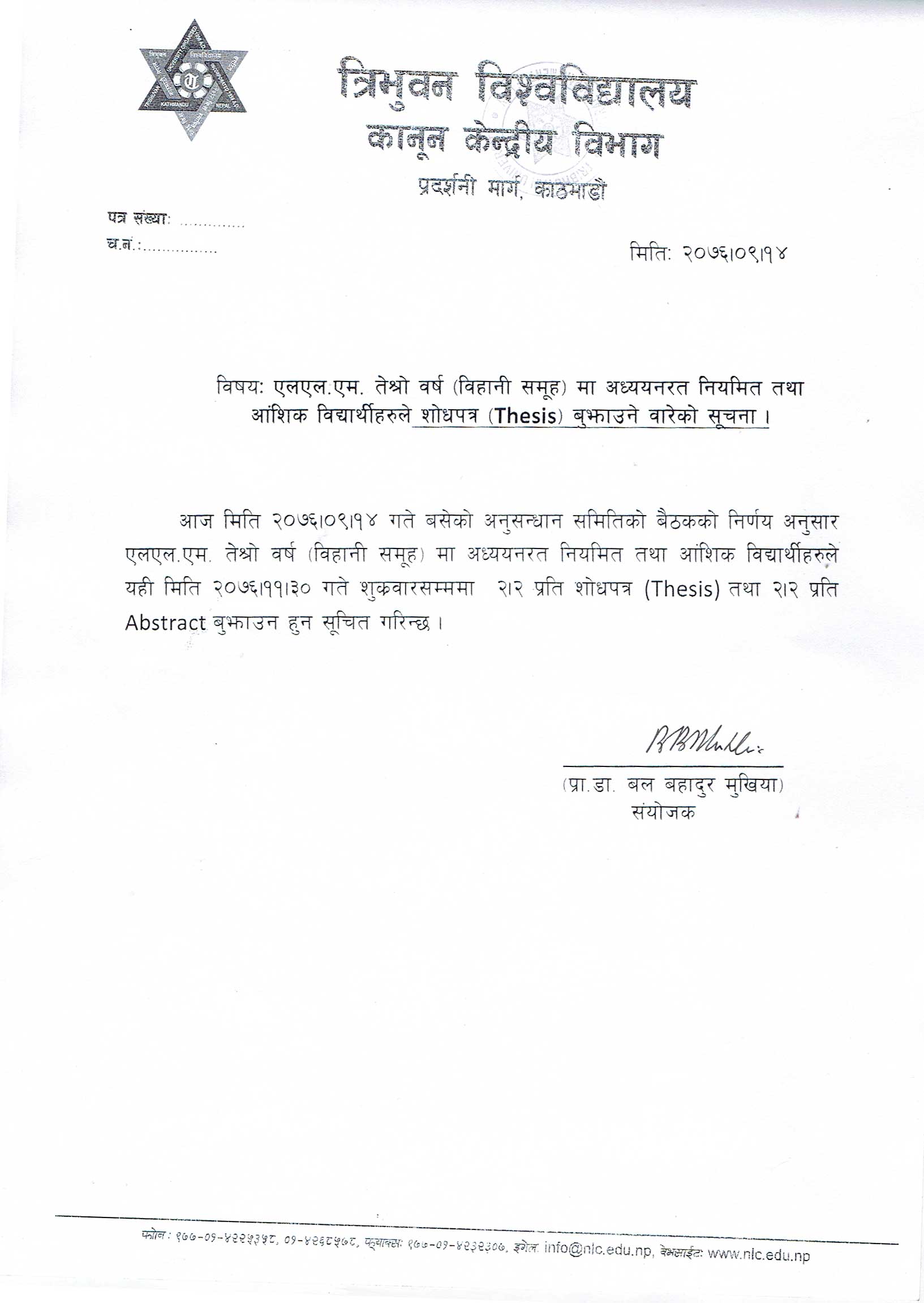 Notice regarding to Thesis LL.M. 3rd Year Morning