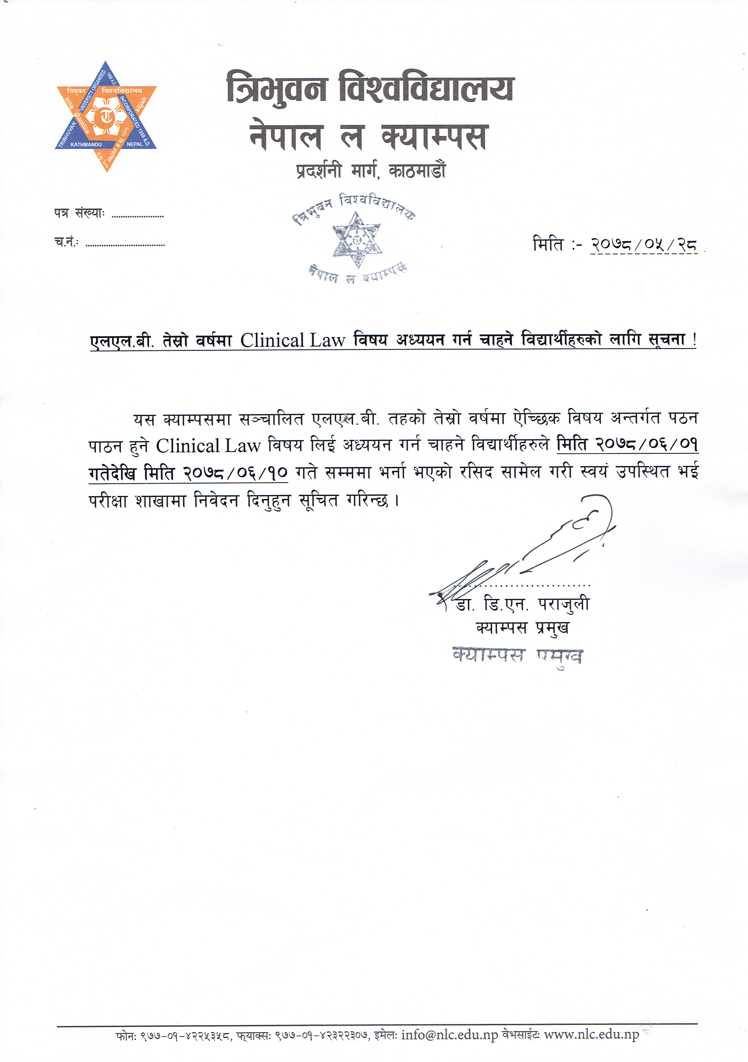 Notice regarding Clinical Law (LL.B. 3rd Year)