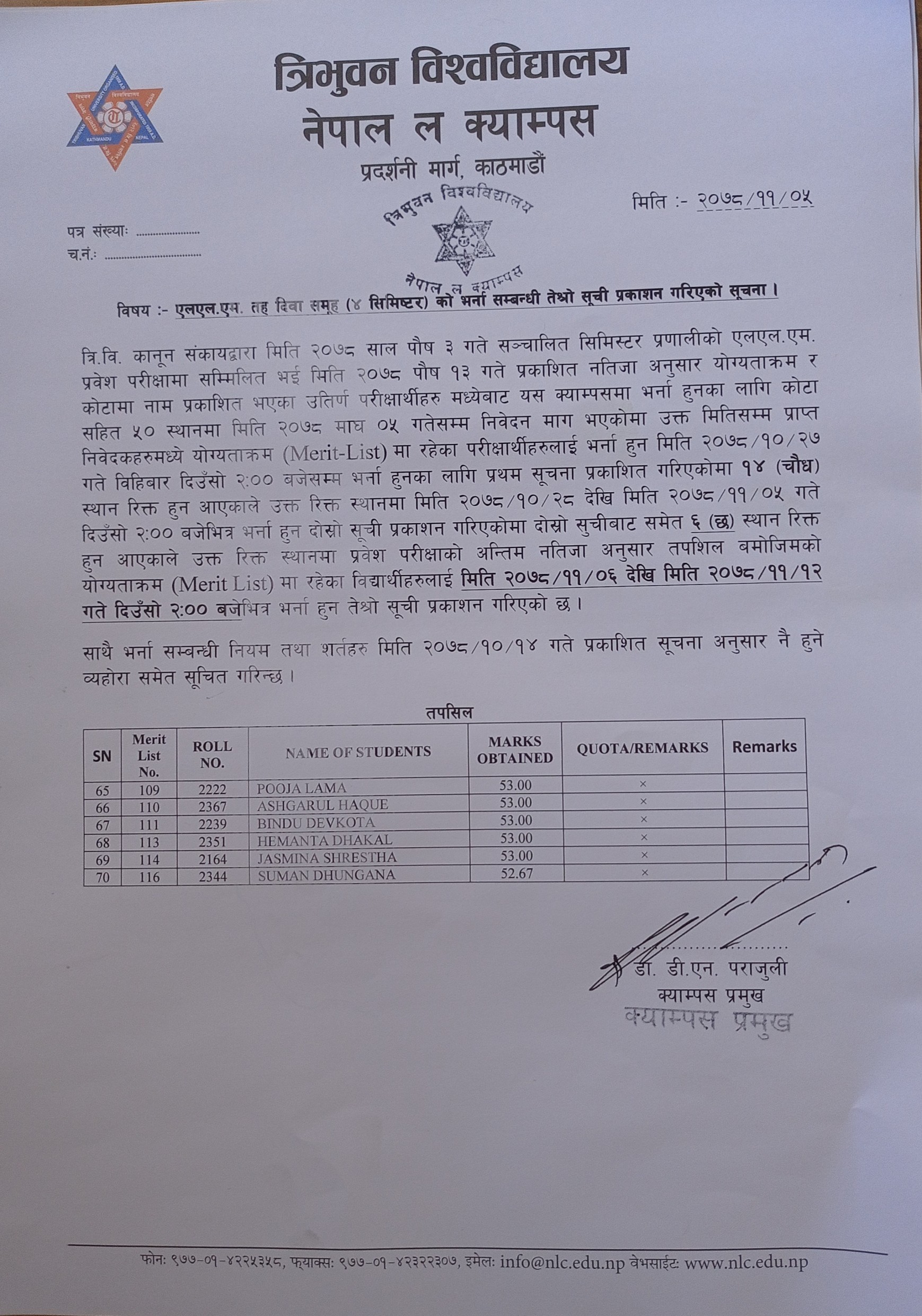 Published Date: 2022-02-17 एलएल.एम तह दिवा समुह (४ semester ) को भर्ना सम्बन्धी तेश्रो सुची प्रकाशन गरिएको सुचना हेर्न यहाँ click गर्नुहोस |