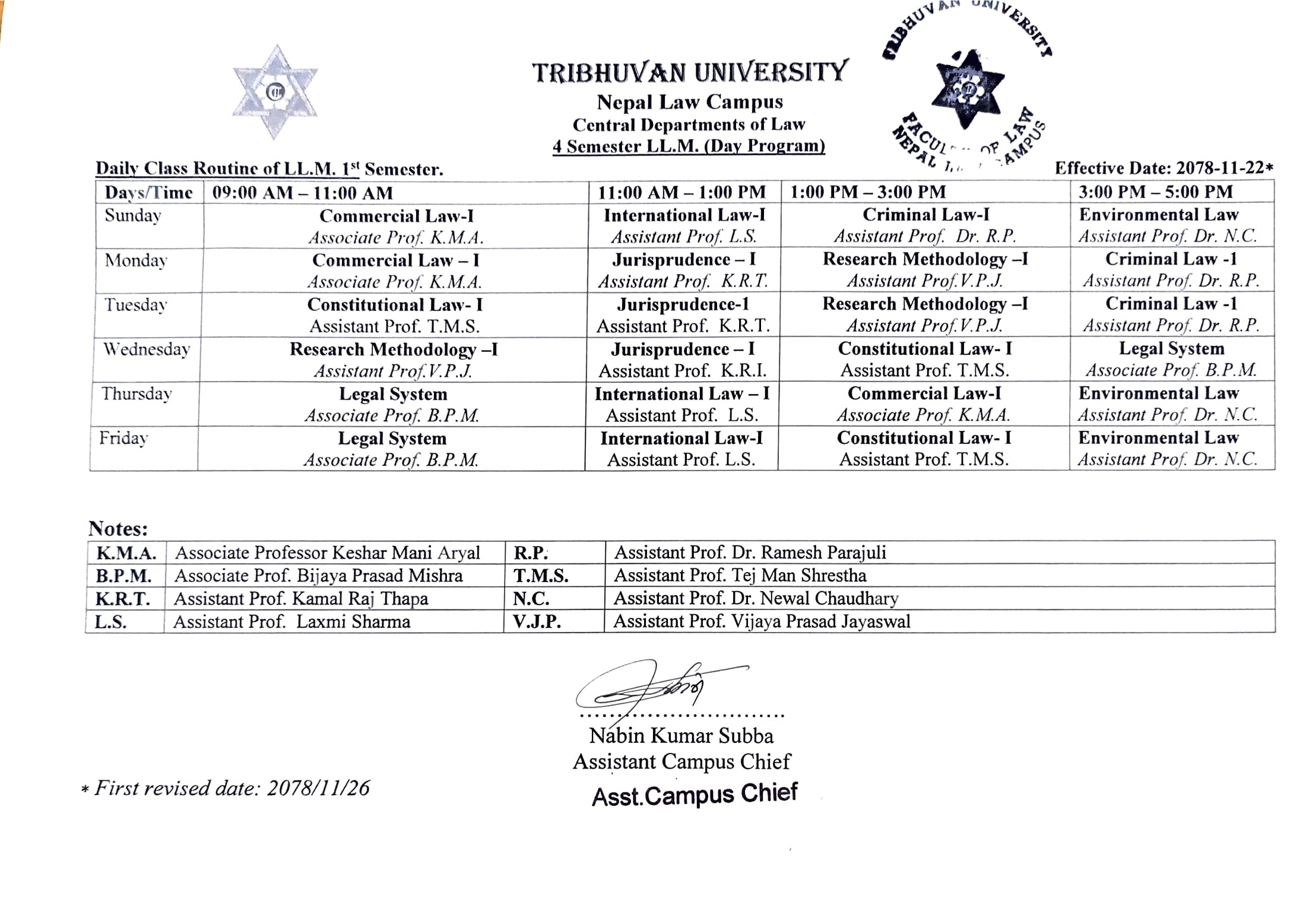 LL.M. 6th Semester ( Morning) Final Exam Notice