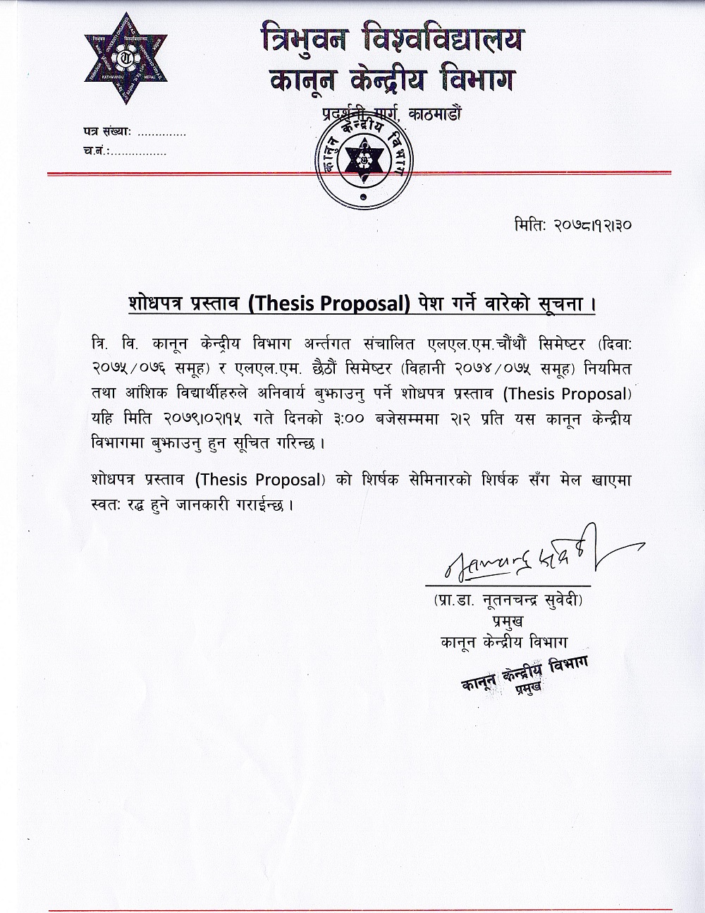 शोधपत्र प्रस्ताव (Thesis Proposal) पेश गर्ने बारे सुचना |
