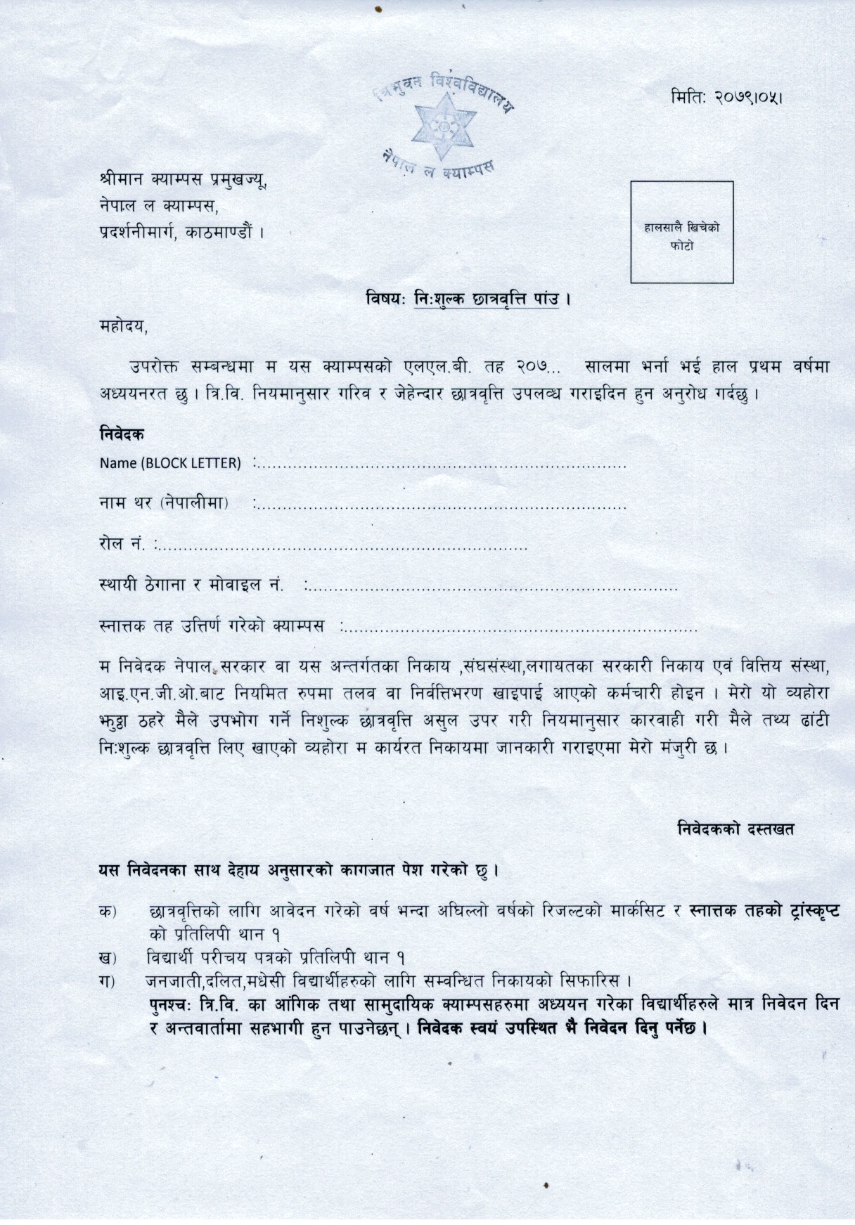 छात्रवृत्तिको फर्म प्राप्त गर्न यहाँ Click गर्नुहोस् ।