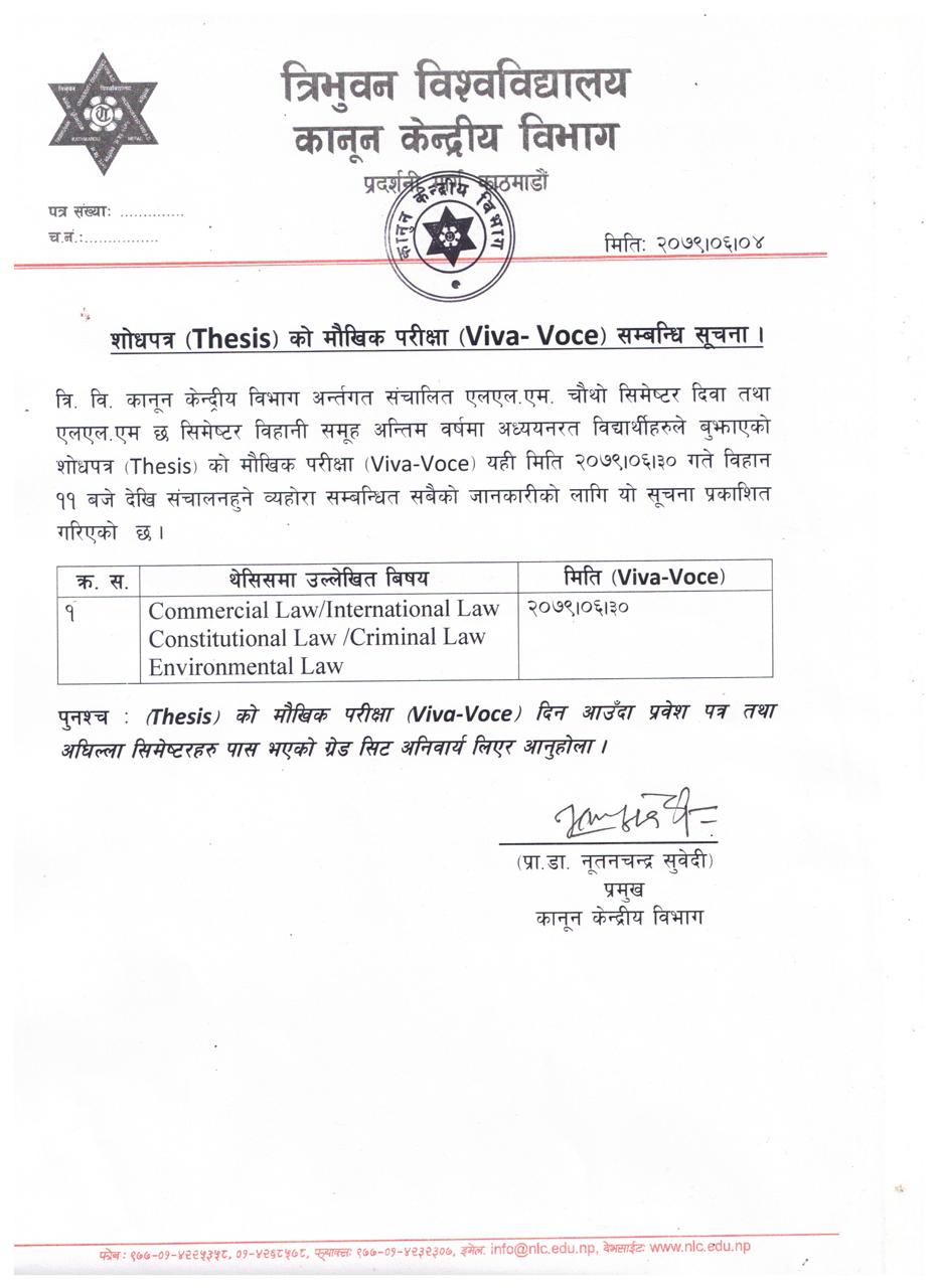 शोधपत्र (thesis) को मौखिक परिक्स्या ( vice -voce) सम्बंन्धि सूचना