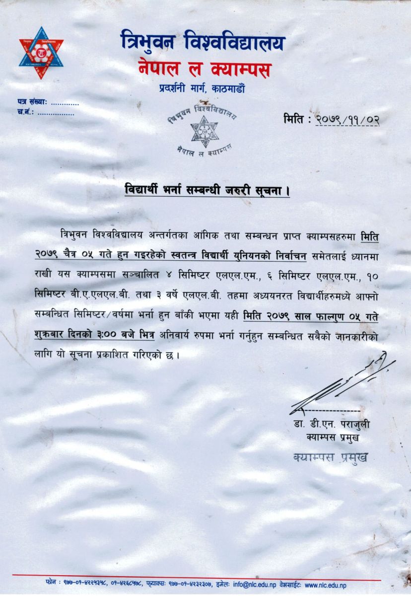 विद्यार्थी भर्ना सम्बन्धी जरुरी सूचना हेर्न यहाँ