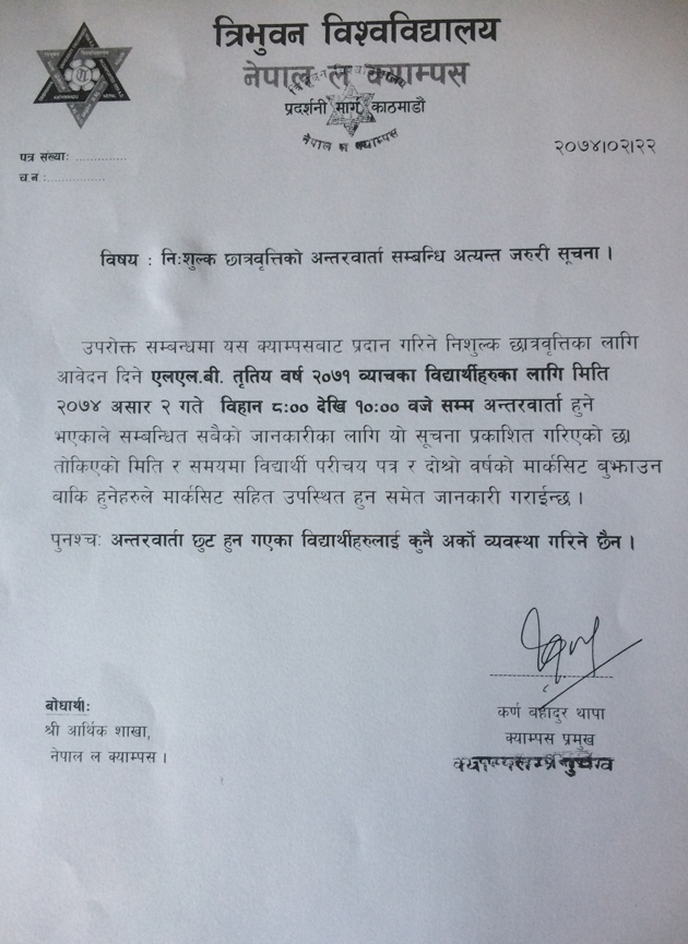 Notice about scholarship interview