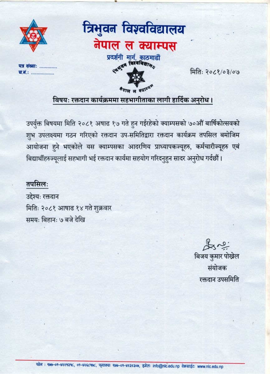 रक्तदान कार्यक्रममा सहभागीताका लागी हार्दिक अनुरोध ।